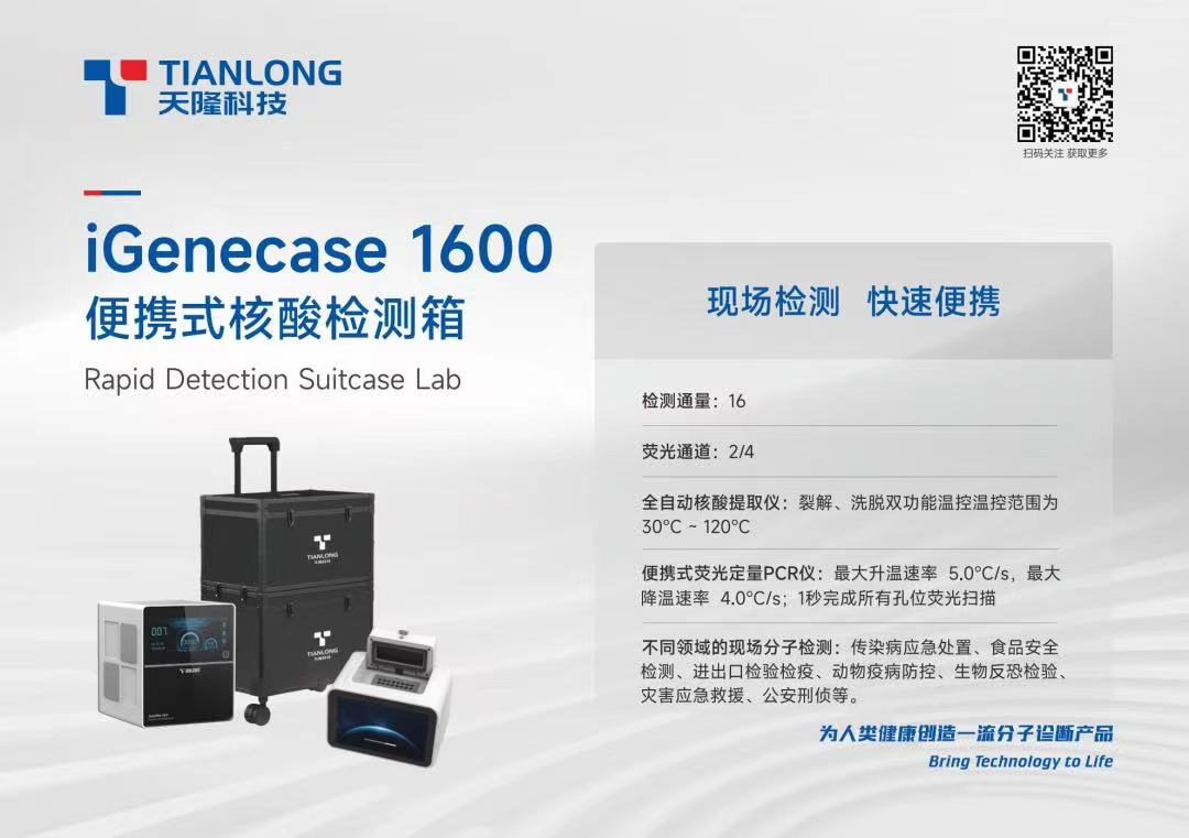iGenecase 1600便攜式核酸檢測箱是天隆科技專為小型實驗室和現場檢測等場景量身打造,一個組合式拉桿箱就能將整個核酸檢測實驗室收納進去。