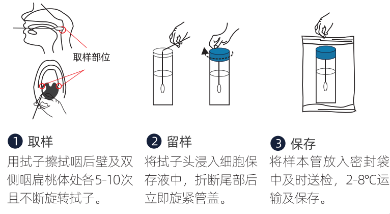 1、一般采集咽拭子即可,鼻拭子、痰、下呼吸道分泌物、血液、糞便等標本中也可檢測出新型冠狀病毒核酸。
