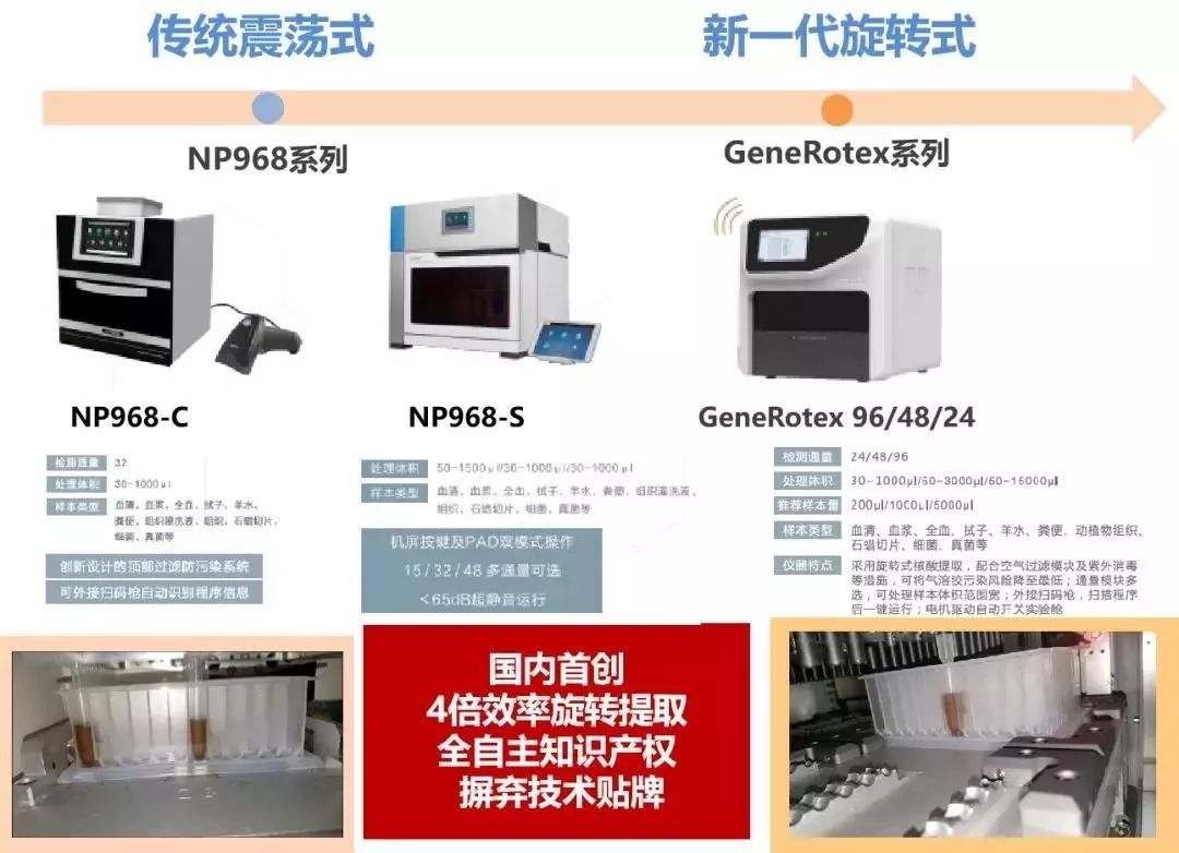 將滅活病毒后的樣本進行核酸提取,產物用于后續檢測??刹捎檬止しǎ部刹捎么笸康淖詣踊O備,如天隆NP968-C核酸提取儀、PANA9600E及PANA9600S全自動化核酸檢測工作站等,更能降低操作人員被感染風險。