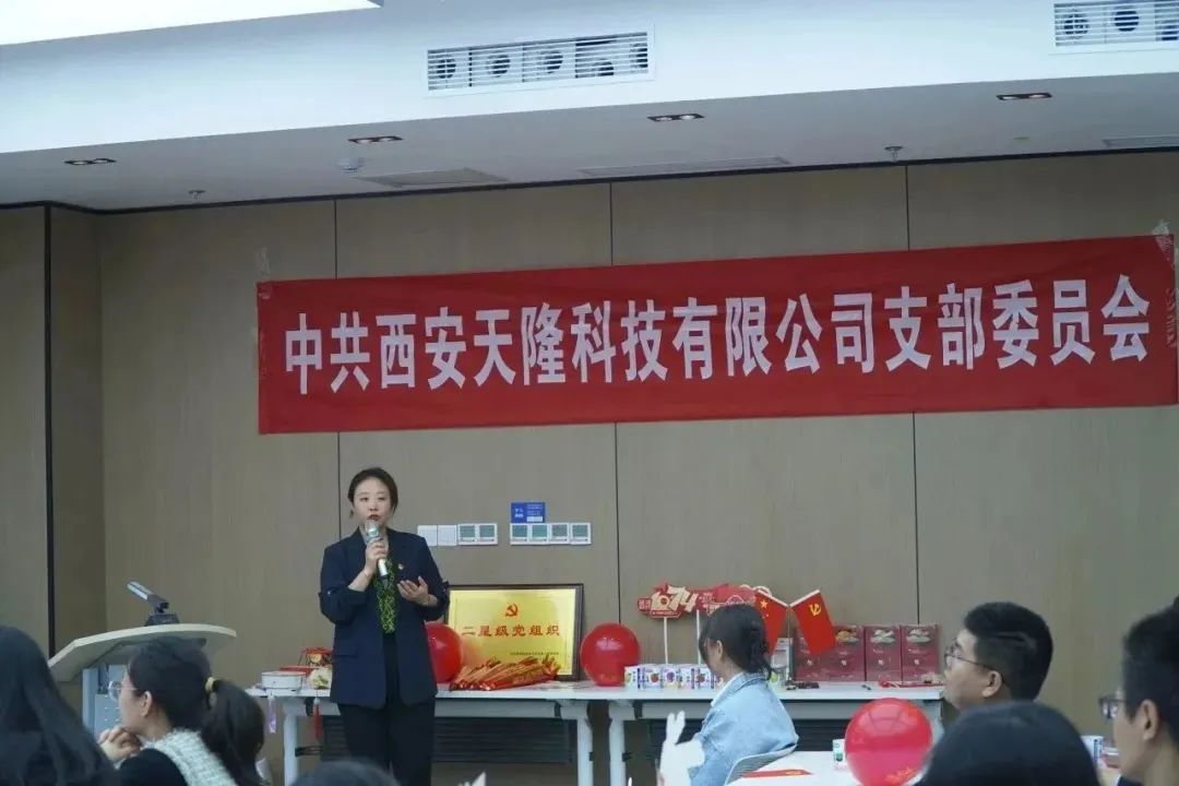 9月25日,恰逢“中秋”、“國慶”雙節來臨之際,西安天隆科技有限公司黨支部組織召開第三季度黨課暨主題黨團日活動。通過黨知識搶答、黨史故事宣講、支部書記講黨課、雙節小活動等系列活動,進一步增強黨支部創造力、凝聚力和戰斗力,發揮好黨支部戰斗堡壘作用和黨員先鋒模范作用。本次活動吸引了部分天隆青年加入,支部黨員及天隆青年共21人參加活動。會上,黨員們積極參與到黨知識搶答、現場問卷答題、黨建猜燈謎、重走長征路等活動當中,豐富多彩的活動使黨性教育從被動接受轉向主動參與。