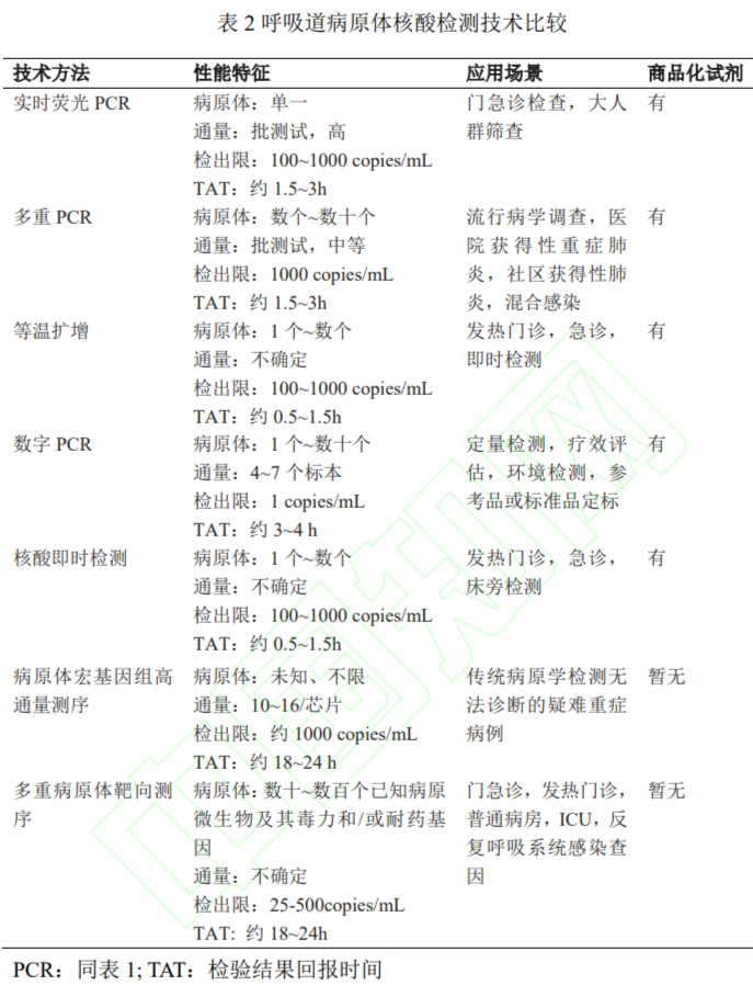 實時熒光 PCR 包括單靶標或多靶標呼吸道病原體核酸檢測,可作為核酸即時檢測法的參考方法,主要適用于門急診、住院患者和大規模人群篩查。